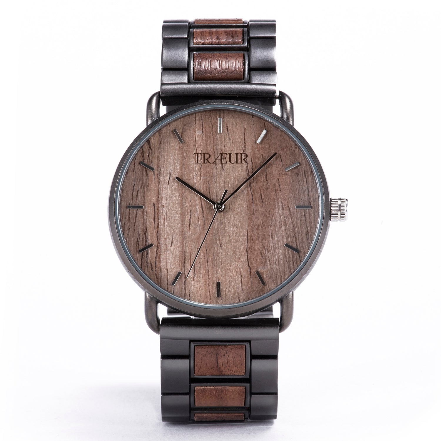 The TRÆUR NORD – Walnut Deep is a men’s watch that combines a polished metal case with a Walnut Wood band, creating a modern yet timeless aesthetic. Its deep brown wood accents paired with subtle black details reflect Scandinavian minimalism and understated strength.