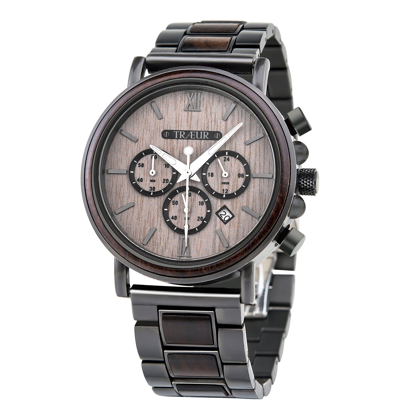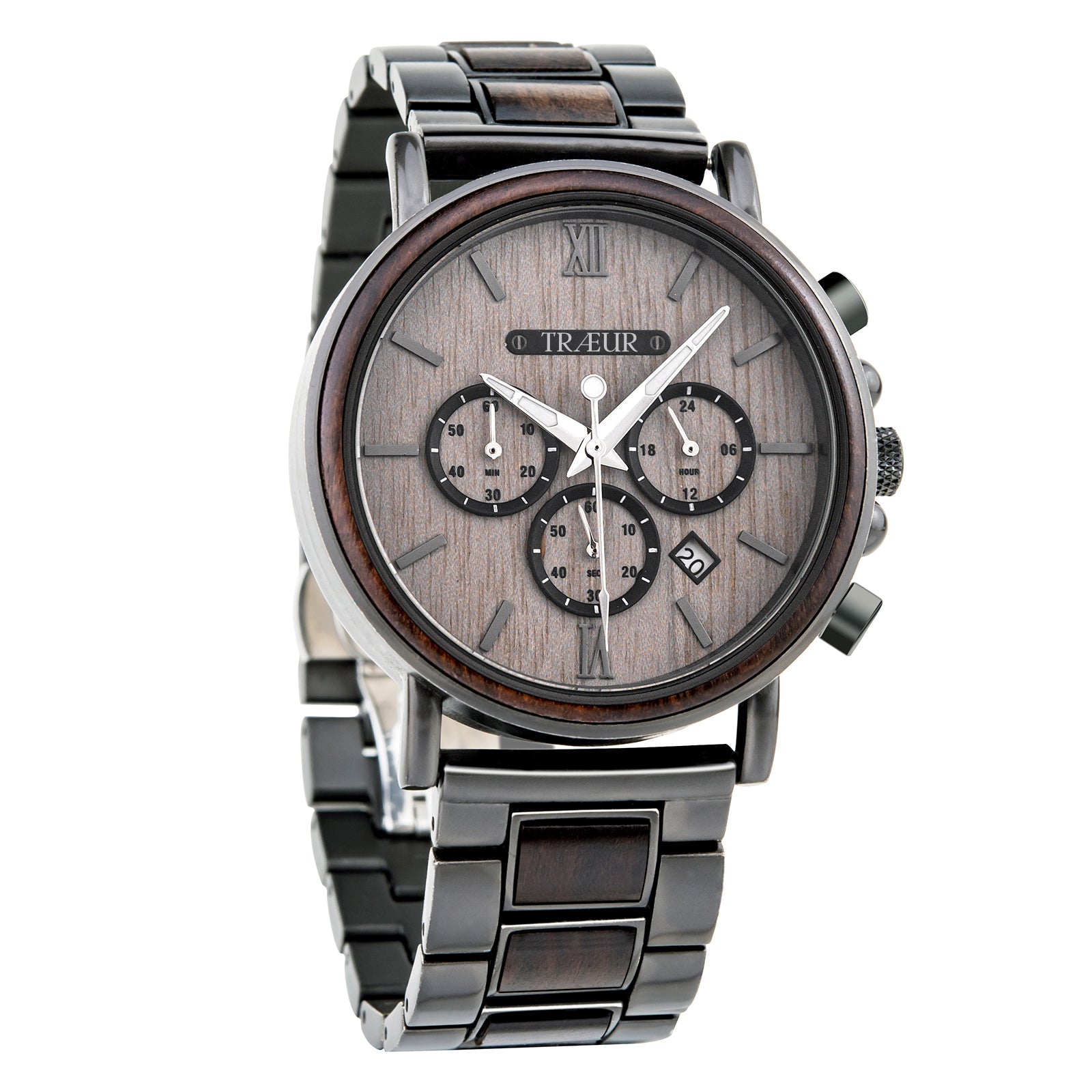 The TRÆUR SKOV – Ebony Shadow is a men’s wooden watch that combines the natural elegance of Ebony Wood with polished metal accents, creating a bold and sophisticated timepiece. Its dark case and subtle contrasts evoke depth and masculine refinement while staying true to Scandinavian minimalist design.